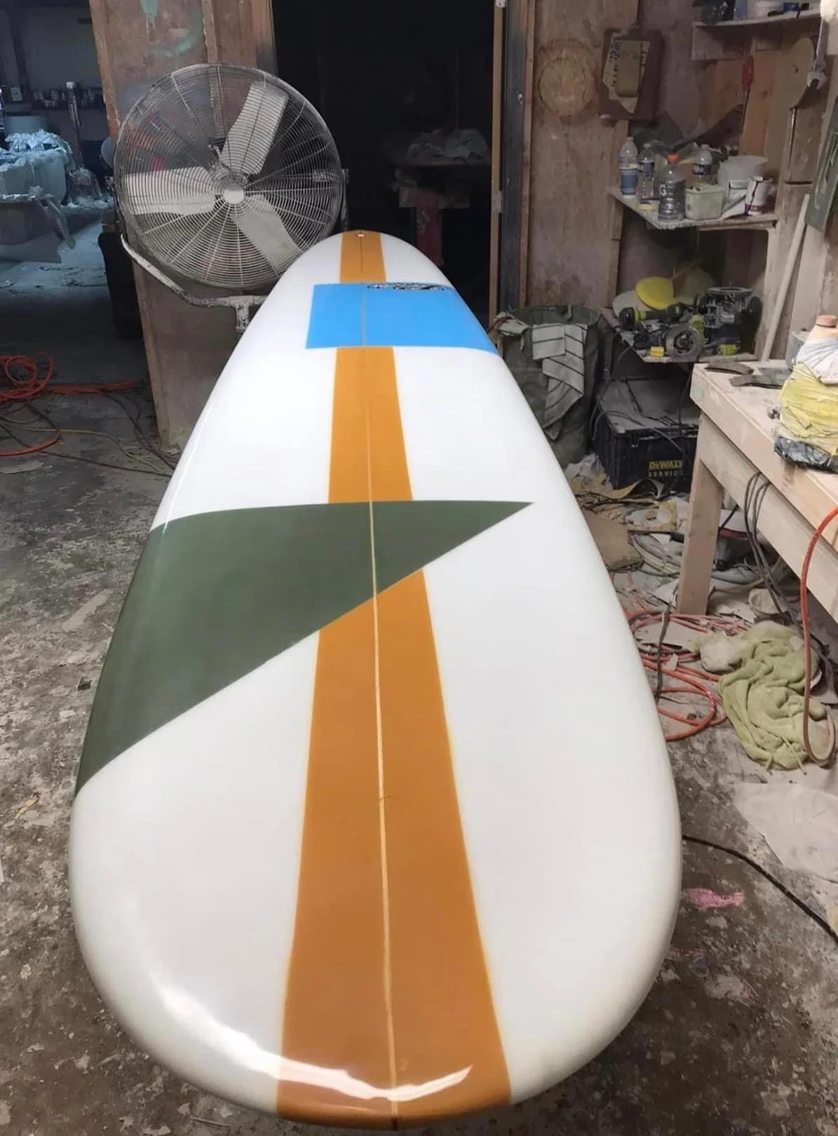 My client ask me to design a long board with lines, triangles, and squares (oh my!) on it. Rather than making a pattern out of these shapes, I decided to make each shape large and overlapping to make the design visible from far away. With this design, people can see the design from the beach while the client surfs.